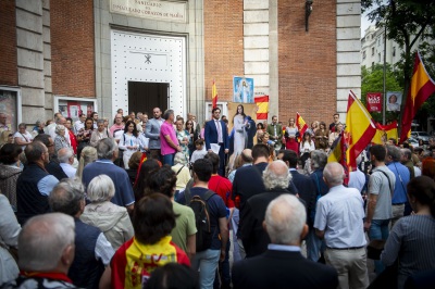 Decenas de personas rezan el rosario en Ferraz en la víspera de las elecciones europeas tras la autorización del TSJM
