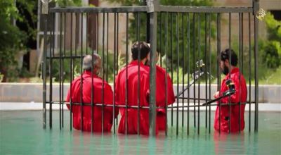 En otra parte de la grabación, se ve a milicianos que introducen en el interior de una jaula --como la empleada durante la ejecución del piloto jordano secuestrado por el grupo terrorista-- a cuatro presuntos espías a los que a continuación se sumerge en una piscina para que se ahoguen. Posteriormente, se ve de nuevo la jaula con los prisioneros muertos.