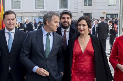 Así se ha pronunciado en el acto de 46 aniversario de la Constitución que se celebra este viernes en el Congreso, al que ha acudido acompañado por cinco de sus presidentes autonómicos, la madrileña Isabel Díaz Ayuso, el murciano Fernando López Miras, el castellanoleonés Alfonso Fernández Mañueco, el gallego Alfonso Rueda, y el aragonés Jorge Azcón.