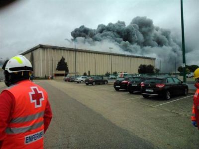 Los Bomberos han señalado que el incendio es "incontrolable" debido a la presencia de material inflamable, fundamentalmente depósitos de amoníaco, en la planta de la industria cárnica.